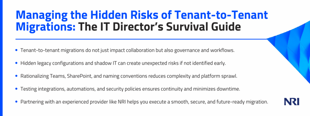 Ready to move forward with clarity and control? Contact NRI to plan your tenant-to-tenant migration with security, continuity, and long-term performance at the center.